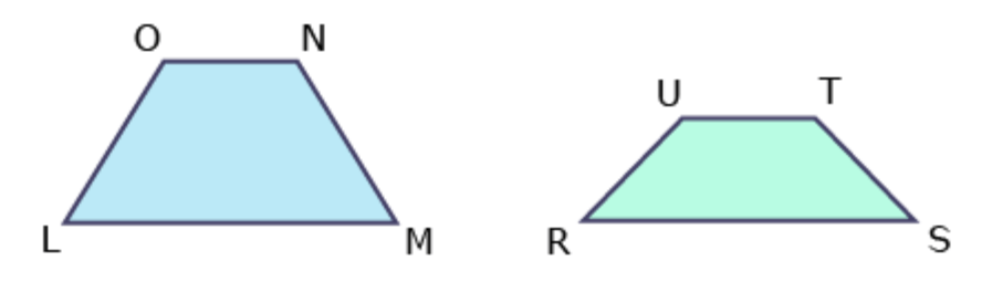 Trapezoid LMNO is similar to RSTU. Complete the following statement: