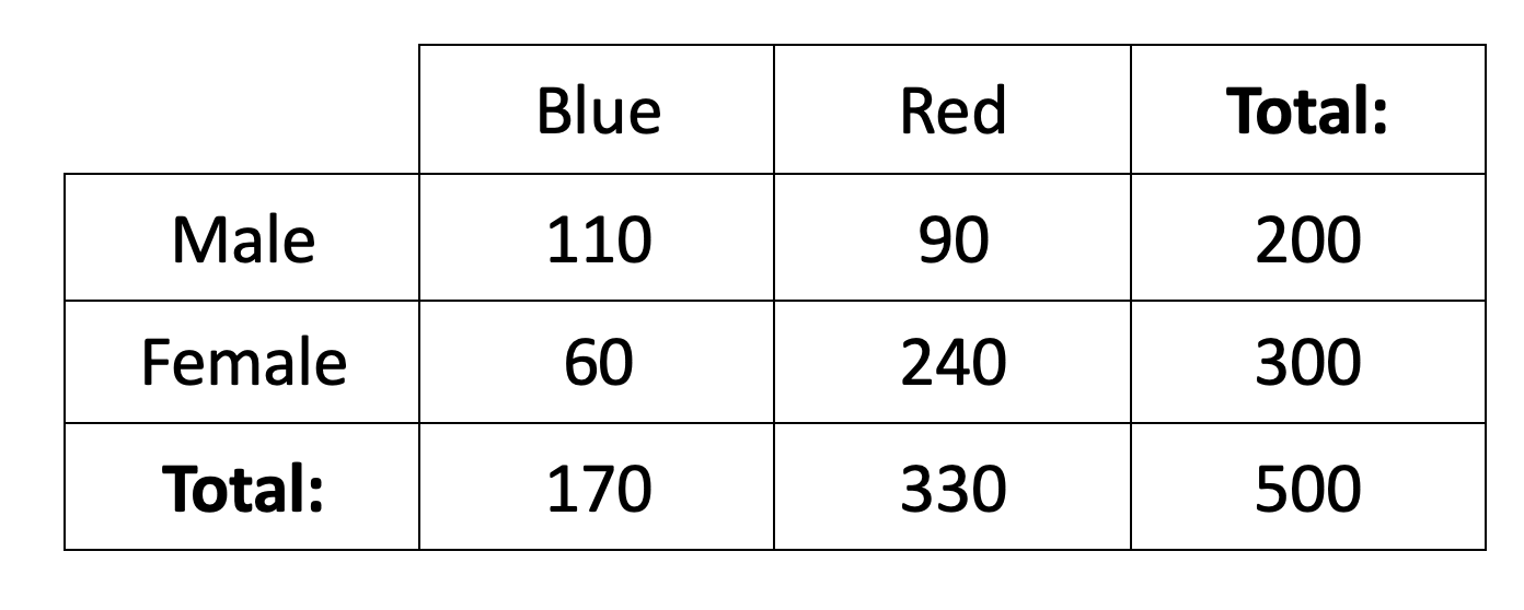 2. What is the probability of picking a person who is Male, given that they like Red?