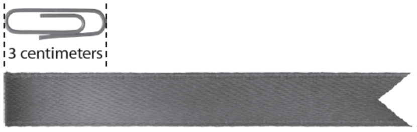 The length of the paperclip is 3 centimeters. Use the paperclip to estimate the length of the ribbon. Select the best estimate below.