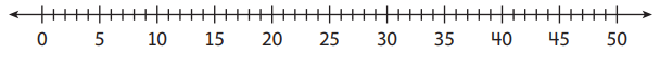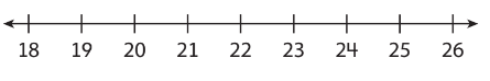 Jersey and Kinsley are running laps. Jersey runs 5 fewer laps than Kinsley. Kinsley runs 23 laps. Use the number line to show how far Jersey runs. Circle your final answer on the number line.