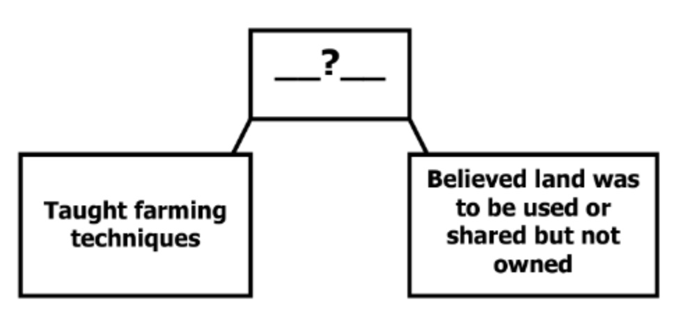 What is the best title for the graphic representing the interaction between Europeans and Indigenous peoples?