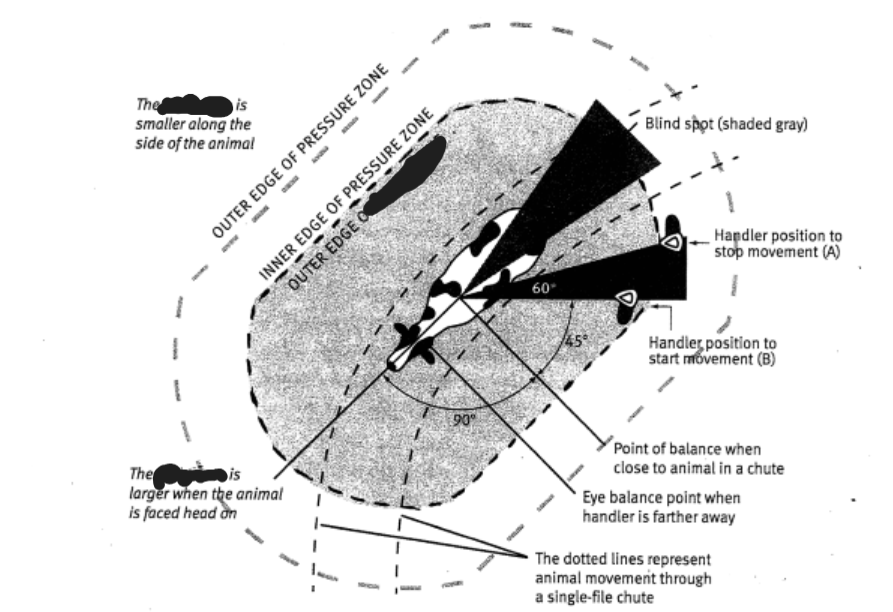 Temple is responsible for promoting and researching this type of conceptual diagram for several production animals. There is a specific name for the colored zone from which all of this information is gathered that triggers the fight or flight response. What is this zone referred to as?