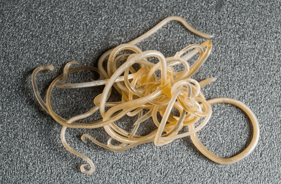 This little danger noodle, commonly known as Roundworm, along with many other parasites, can be contracted by consuming food/water that is contaminated with what? (This is also the reason why you should NEVER use it for fertilizer)
