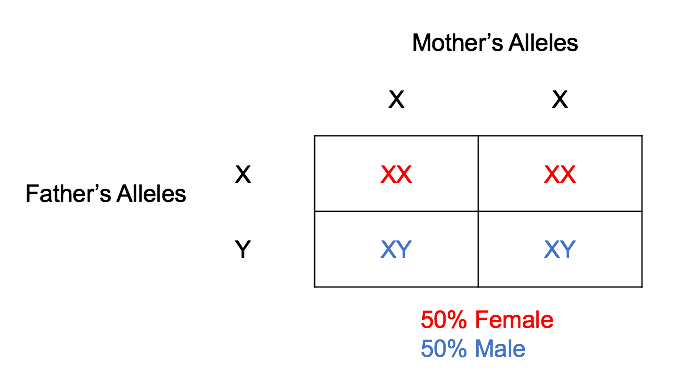 Make a punnett square to show why people say there is a 50% chance to have a boy and 50% chance to have a girl?
