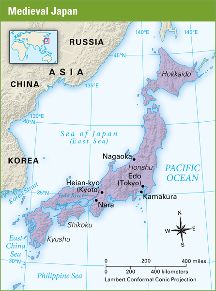 What present-day country lies to the east of Japan, across the Pacific Ocean?
