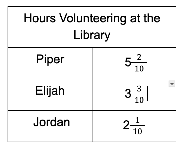 6. How many hours did Piper and Jordan volunteer at the library in all?
