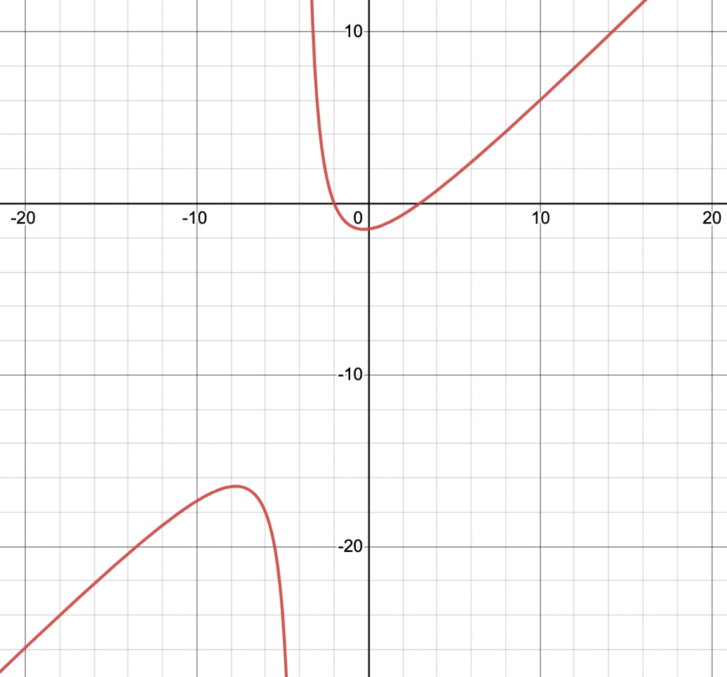 Write a rational function with a slanted asymptote and a vertical asymptote at x=2
