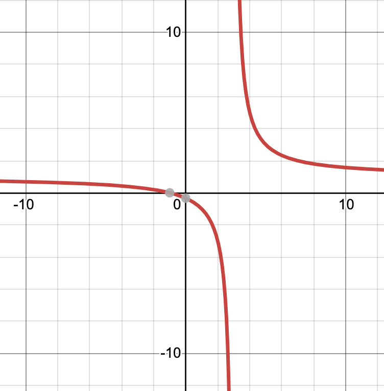 Write a rational function with an x-intercept at (4,0) and a y-intercept at (0,2)