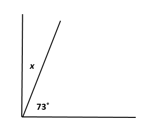 Together these angles make a right angle. The bottom angle is 73 degrees. What is the measure of angle x?