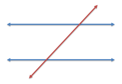 Draw three line segments: two that are parallel to each other and one that is intersecting.
