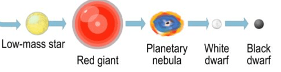 Red Giant --> Planetary Nebula & White Dwarf --> Black Dwarf