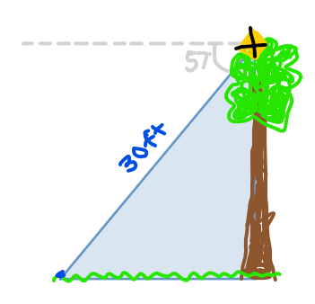 You want to find the height (vertical) of the tree. What trig function and ratio should be used. Write the whole equation. Use x for the height.