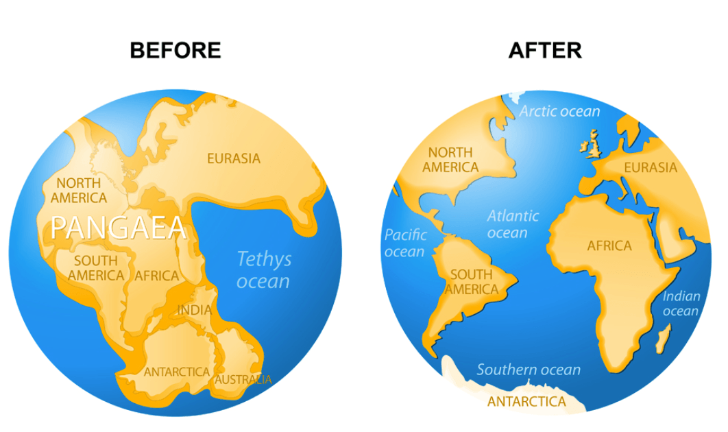 What is the name of the scientist and theory of the continents spreading apart from one giant supercontinent?