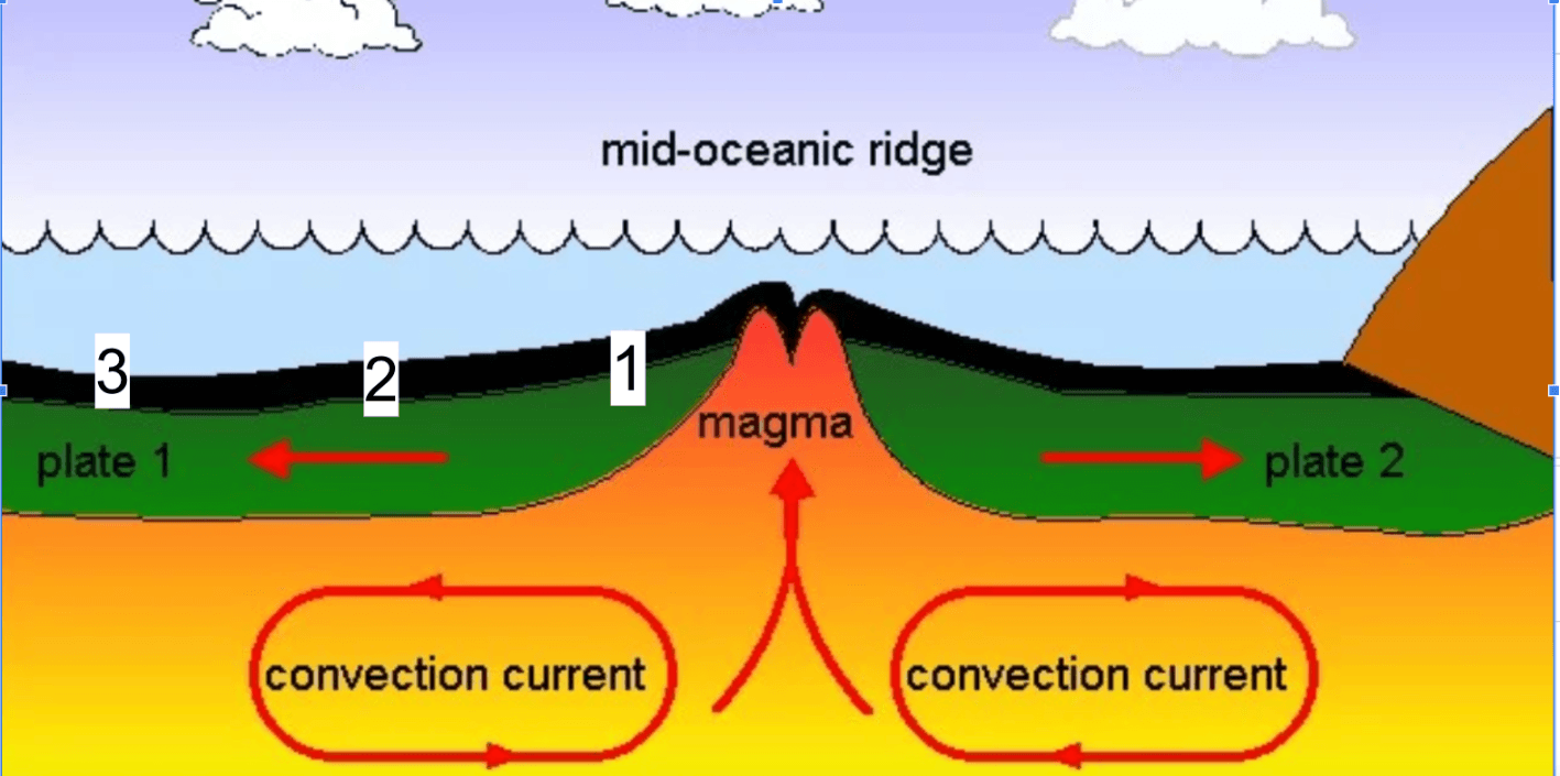 Where would you find the OLDEST crust? 1, 2, or 3?