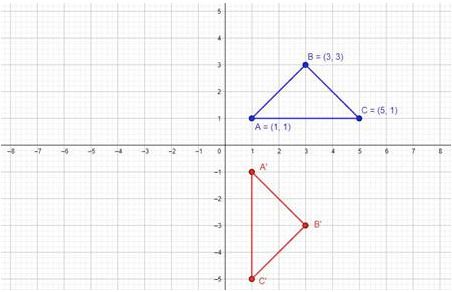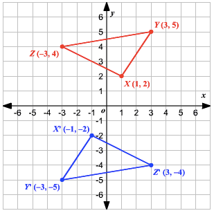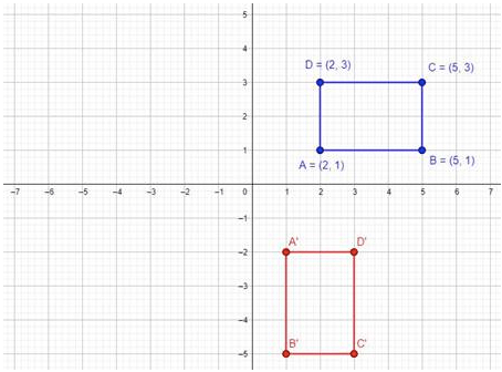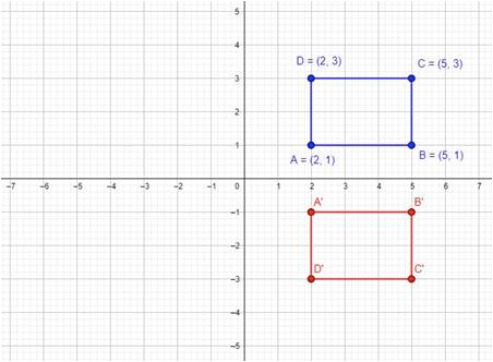 What is a reflection over the x-axis? and What are A'(2,-1) B' (5,-1) C'(5,-3) D'(2,-3)?