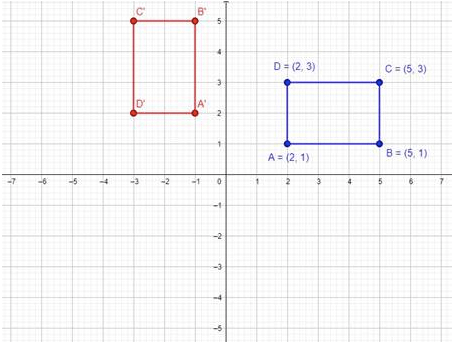 What is a reflection over the y-axis? What are A'(-2,1) B' (-5,1) C'(-5,3) D'(-2,3)