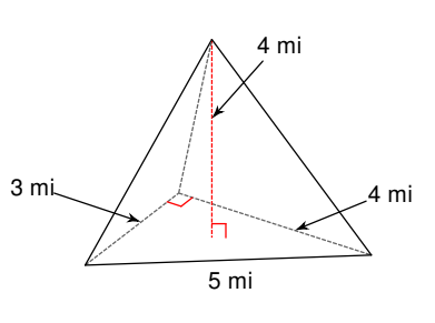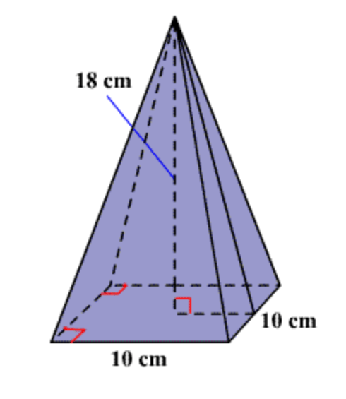 A square pyramid has an edge length of 8 cm. It's slant height is 5 cm. Find the volume of the pyramid.