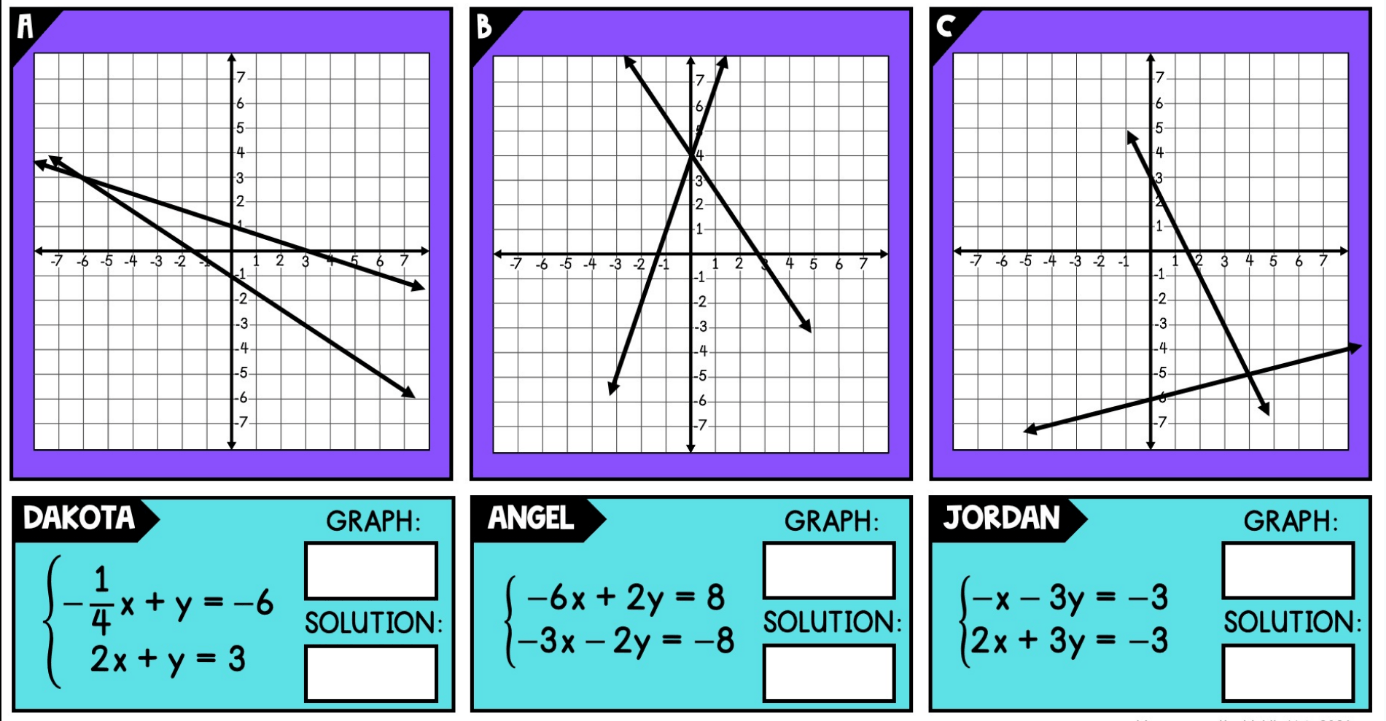 On the white board record which graph each student created to solve their system of equations. Then, write the solution to the system.