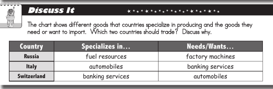 Countries focus their attention on what they specialize in and trade with other countries for their specialties