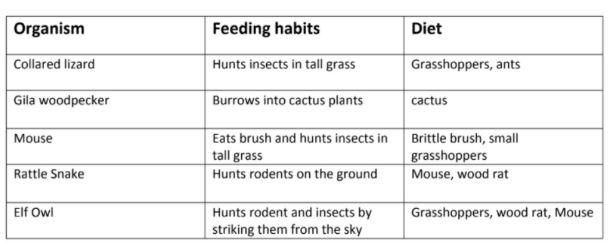Based on the chart below, which organisms are competing in both hunting habits and diet?