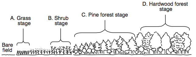 Which type of succession occurs after a disturbance in an existing ecosystem such as a forest fire?