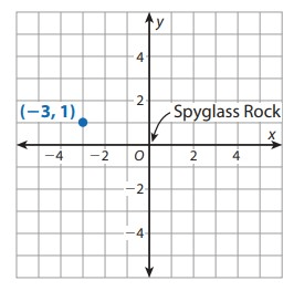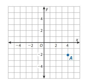 Name the coordinates for point A. Explain what the x-coordinate tells you about the location of the point.