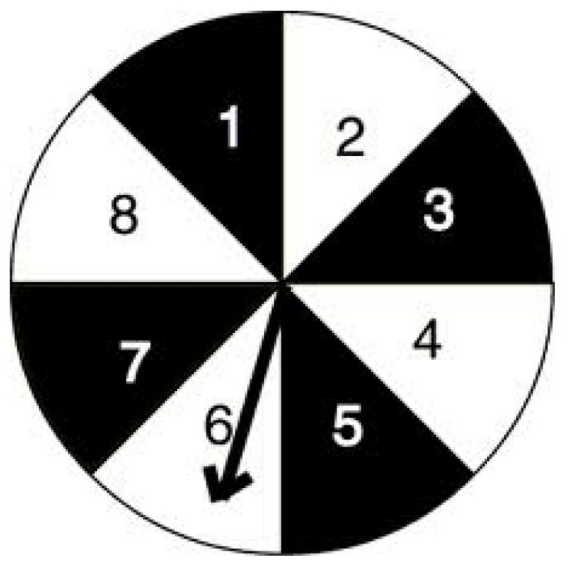 If you spin this spinner one time, what is the probability of landing on an even number?