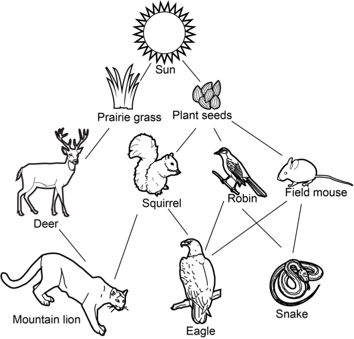 Describe how energy is transferred in a food web.