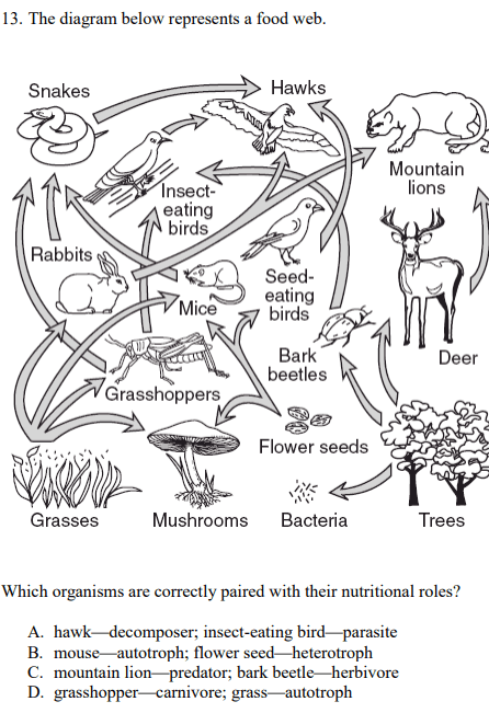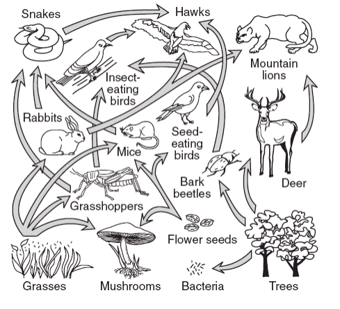 Which population of consumers in this food web would mot likely be negatively affected by an increase in the mouse population?