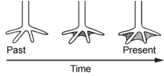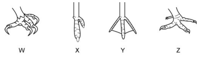 The diagram shows a bird's evolution over time. These feet most likely adapted to which type of environment?