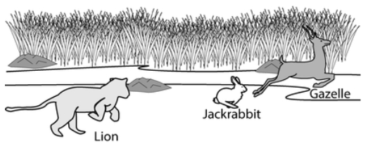 A lion, jackrabbit, and gazelle are running in the picture. Strong legs and quick speed are most important because...
