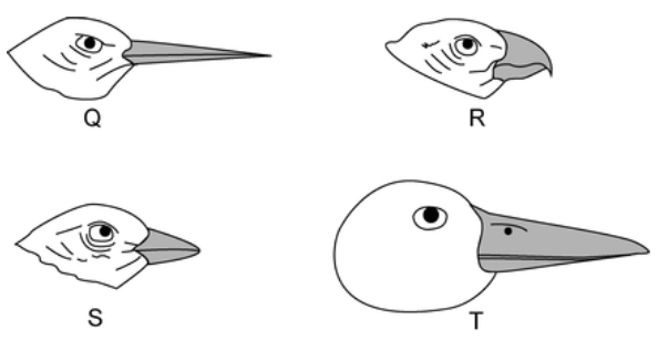 Which beak most likely belongs to a bird that needs to tear meat for food?