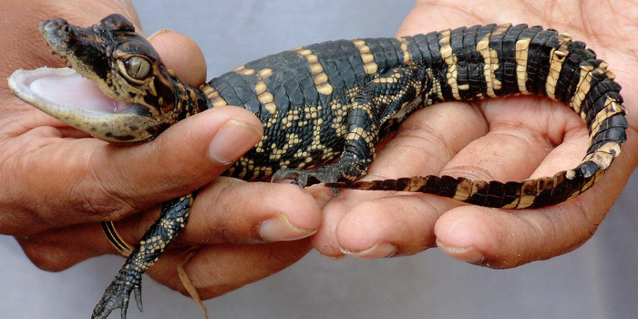 Baby alligators in Georgia are dark colored with light stripes across their backs. How does this help them survive?