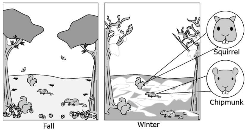 Chipmunks and squirrels are able to live in this environment during the winter because the forest...