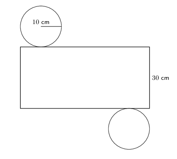 If I want to wrap this cylinder box half in blue paper and half in yellow paper, how much blue paper will I need? Use 3.14 for pi. (Answer in square centimeters)