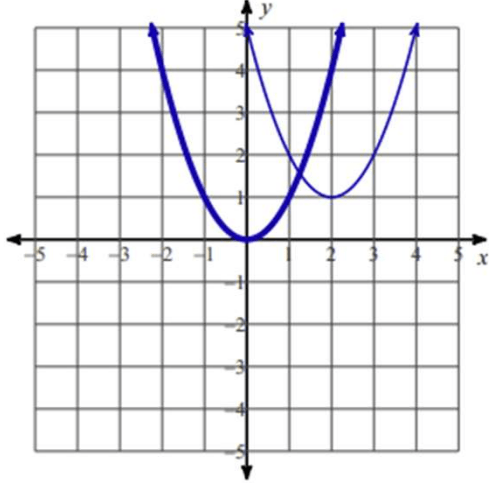 Write the equation in vertex form for the following transformation from the bold parabola to the new parabola. (Remember: y=a(x-h)2+k)