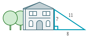 An 11-ft ladder leans against the side of a house. The bottom of the ladder is 8 ft from the side of the house. How high is the top of the ladder from the ground? If necessary, round your answer to the nearest tenth.