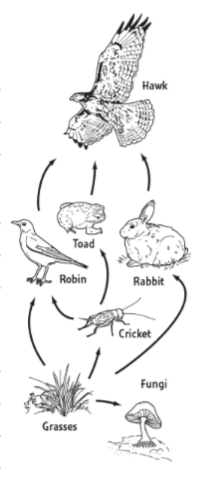 - Consumers: Cricket, robin, hawk, rabbit, toad