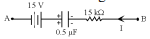 In the circuit segment shown if I = 7 mA and Q = 50 µC, what is the potential difference, VA − VB?