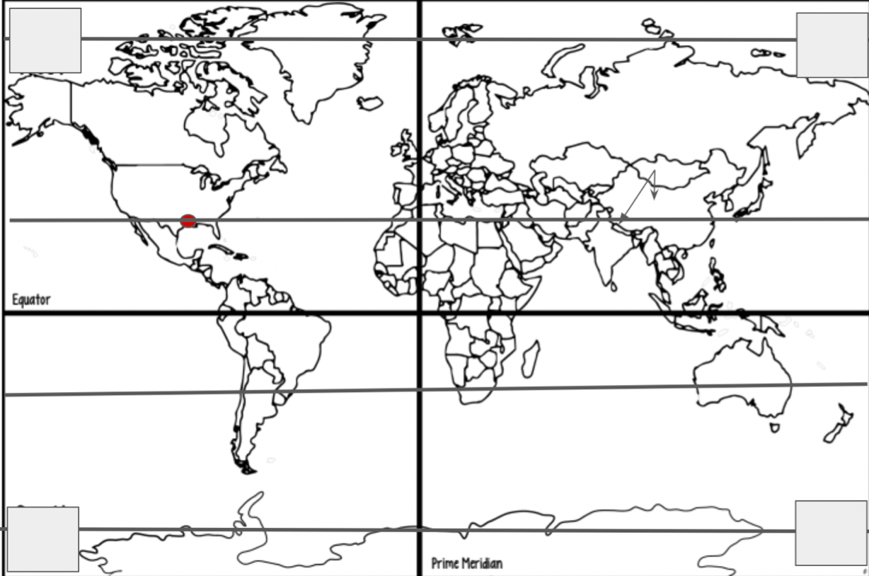 A. the location of something in comparison to the location of something else (ex. Culvers is across from CVS)