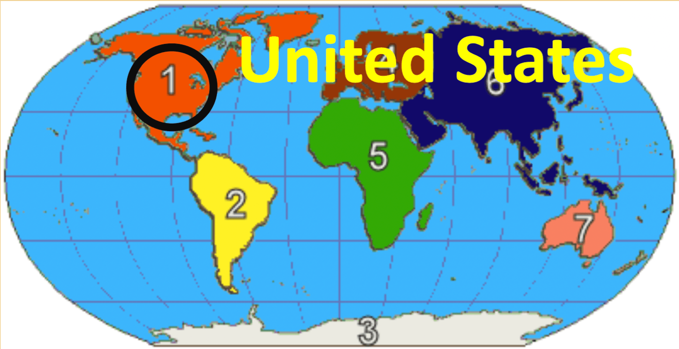 North America, South America, Europe, Asia, Australia, Antarctica, and Africa