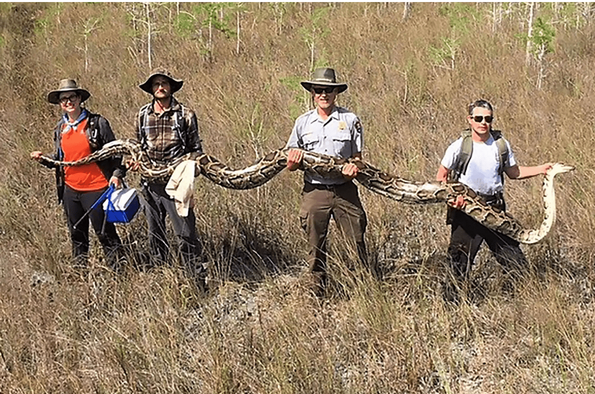 This 17-foot (!) Burmese Python, an invasive species, was caught in what unique Southeastern habitat?