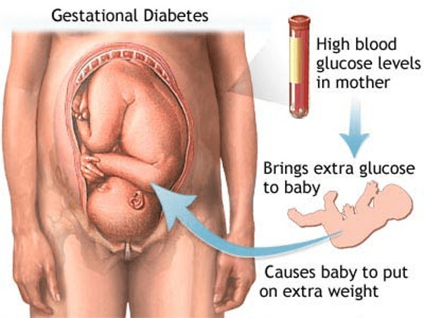 This complication of pregnancy increases the risk of: meconium passage during labor, large baby, placental insufficiency, less moldable skull bones, and can be emotionally and physically frustrating for client, partners, extended family & friends