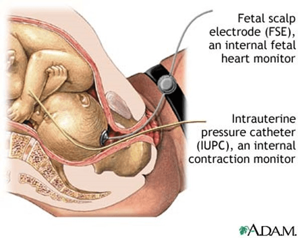 When this complication happens, these tools may be used: internal fetal scalp electrode, fetal scalp stimulation, oxygen mask, position changes, stopping pitocin, IV fluids, intrauterine pressure monitor, amnioinfusion.