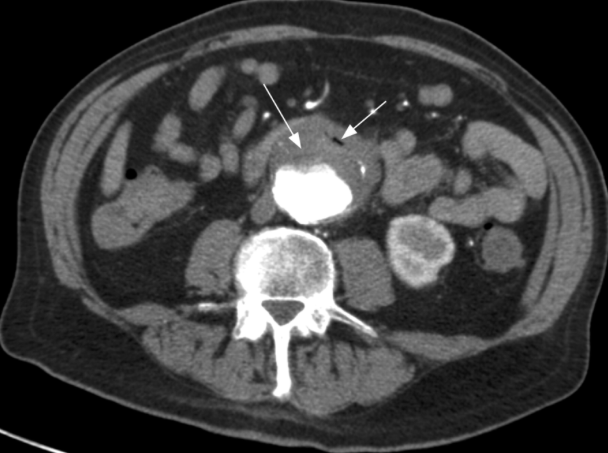 GI bleeding and the following CT scan confirm this diagnosis.