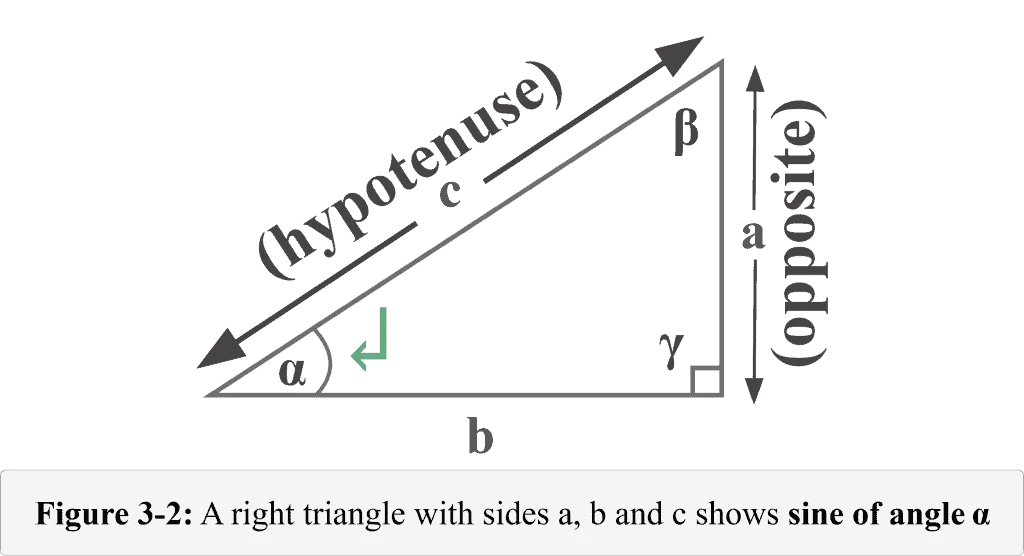 What trig function can be used to find the angle pointed to by the green arrow if the hypotenuse and opposite length are known?
