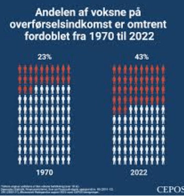 Billedet viser, at antallet der enten modtager su, kontanthjælp, dagpenge eller pension er fordoblet. Det kan have den betydning, at man ikke kan opretholde samme niveau i ydelser, så man må effektivisere eller skære ned på forskellige områder. Eller betale mere i skatter.