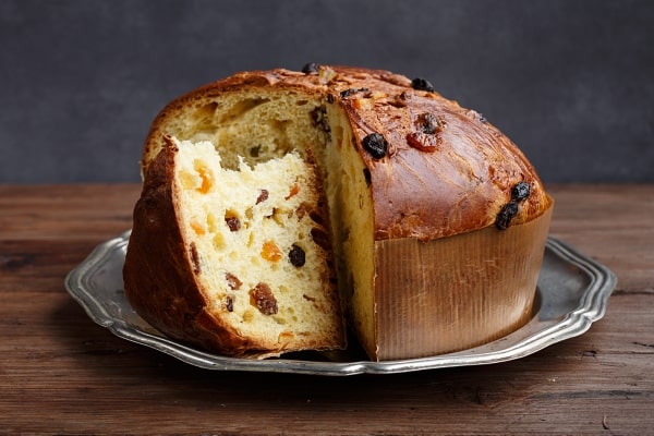 Panettone je italský vánoční dort, obvykle s kandovaným ovocem a ořechy.