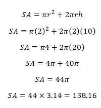 Find the approximate surface area of the cylinder.  Use pi=3.14.