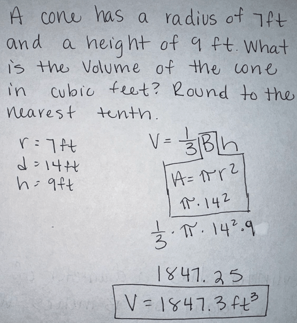 Solve for the Volume of the cone.